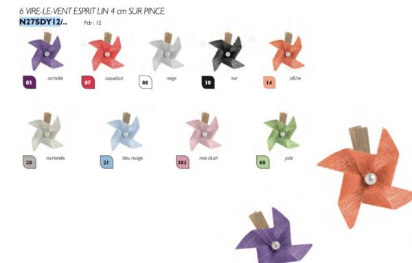 6 Vire-le-vent esprit lin 4cm sur pince vert jade