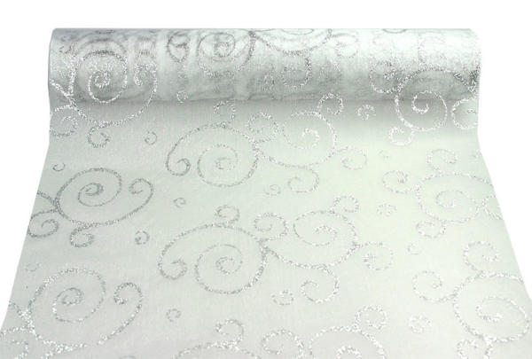 Chemin de table organdi arabesques pailletées argent 30 cm /5 mètres